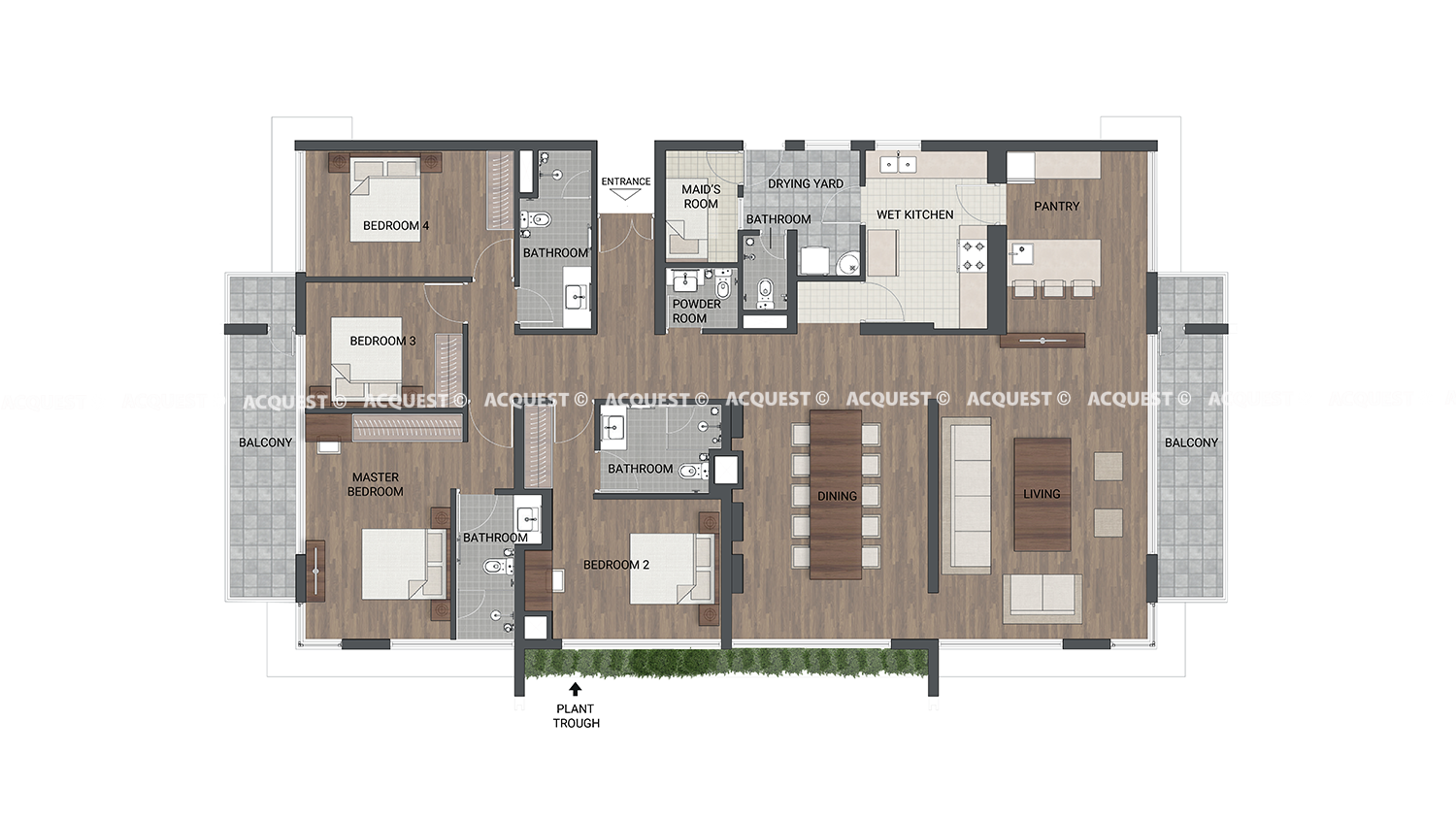 These apartments comprise 4 bedrooms and 3 bathrooms, covering an area of 2,271 sq. ft.