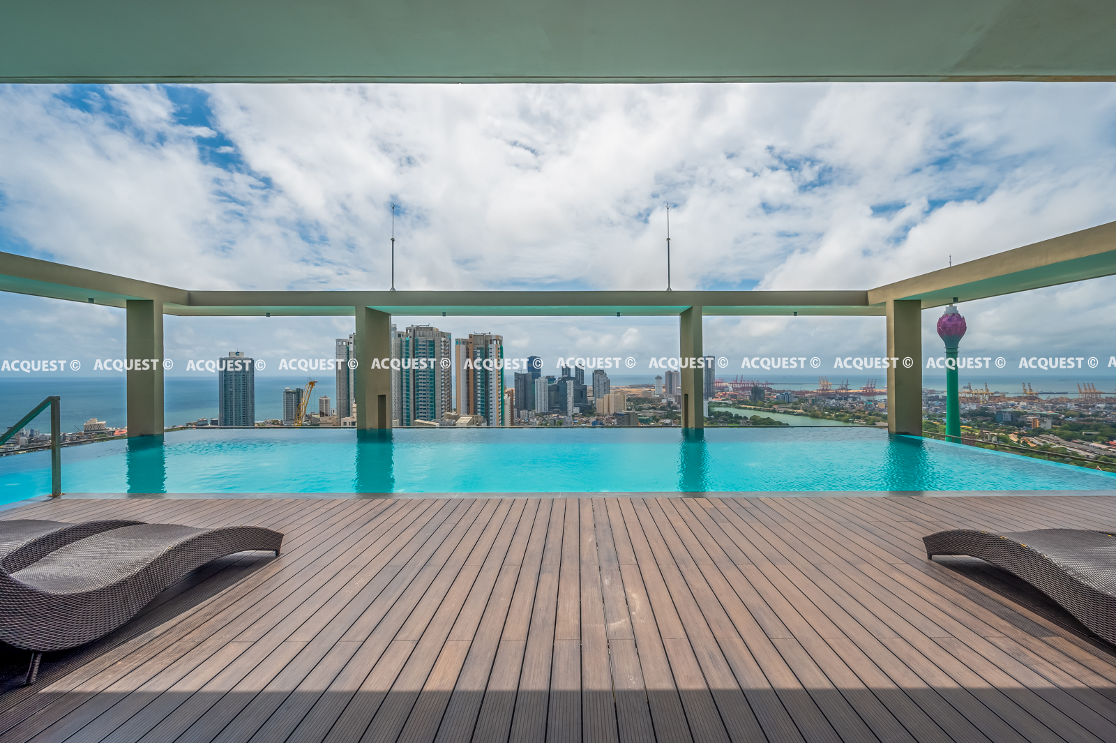The apartment complex features an array of premium amenities, such as a grand lobby, a fully-equipped fitness center, an infinity pool, a junior swimming pool with a landscaped garden, and an expansive rooftop terrace with sweeping city, ocean, and sunset views. Additional amenities include a rooftop garden, a pool deck, a clubhouse with three function spaces, and a video intercom system.